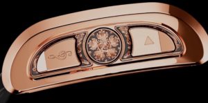 The watch is worn on a black alligator leather strap with an 18K rose gold security folding clasp. There is not one element of this watch that has not been considered. Whether or not its references are to your taste is a separate question. The craftsmanship behind them is not in dispute.