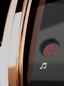 The caseback is where the watch reveals its soul. A piano-shaped sapphire crystal window opens directly onto the music box comb — you can watch the mechanism in action as the melody plays. Surrounding it, a plate is engraved with the actual musical score of “The Godfather Love Theme,” note for note. Elsewhere on the caseback: bullet holes, engraved into the rose gold. A detail that will divide opinion. That is, presumably, the point.